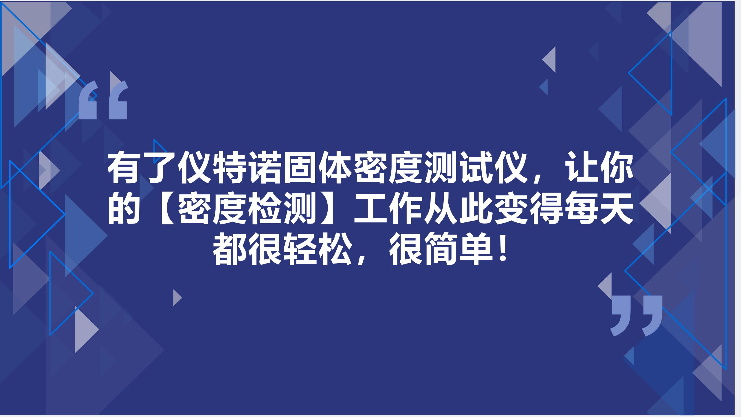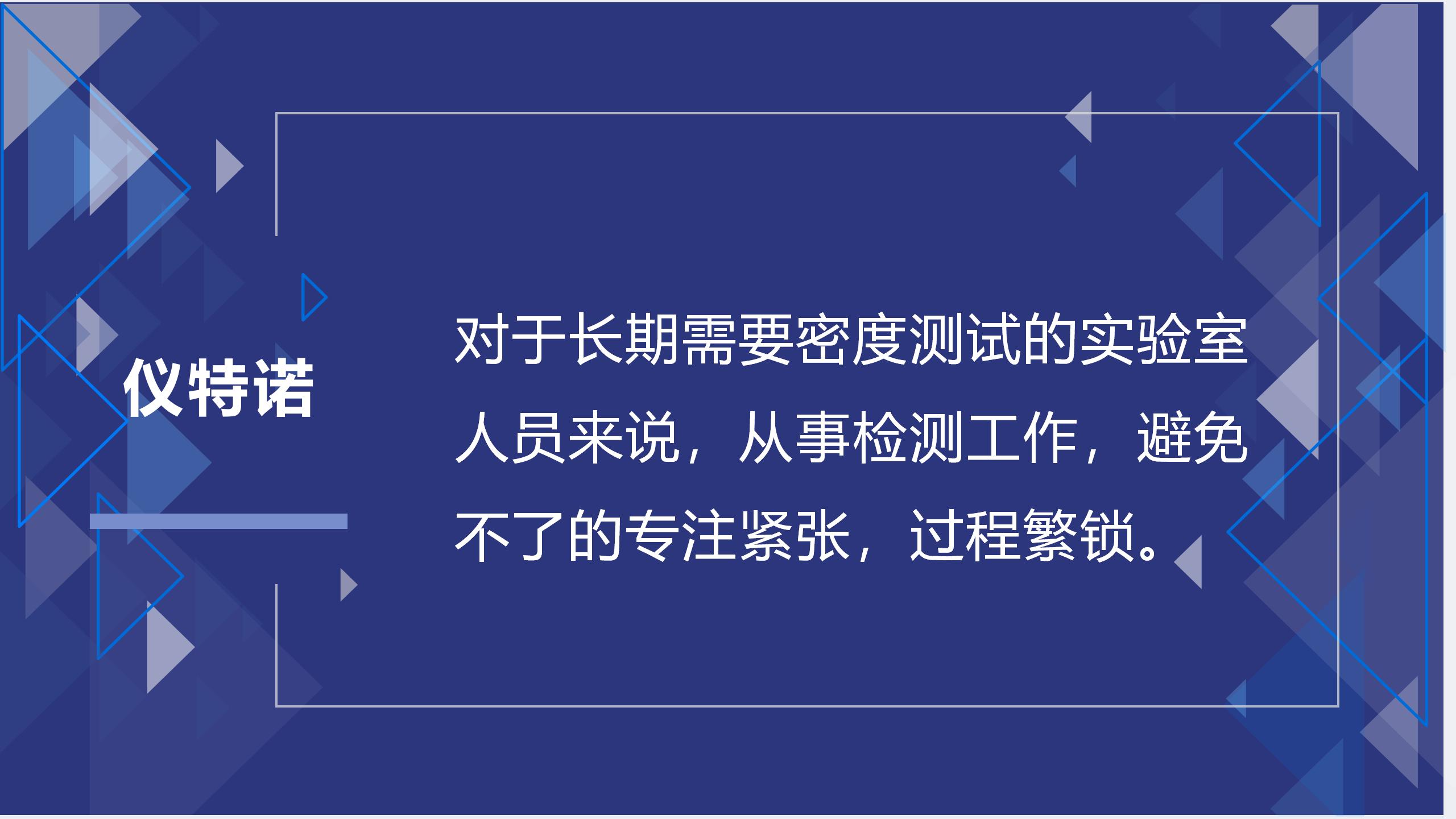 對于長期需要密度測試的實驗室人員來說,從事檢測工作,避免不了的專注緊張,過程繁煩,有了儀特諾固體密度測試儀,讓你的【密度檢測】工作從此變得每天都很輕松,很簡單!