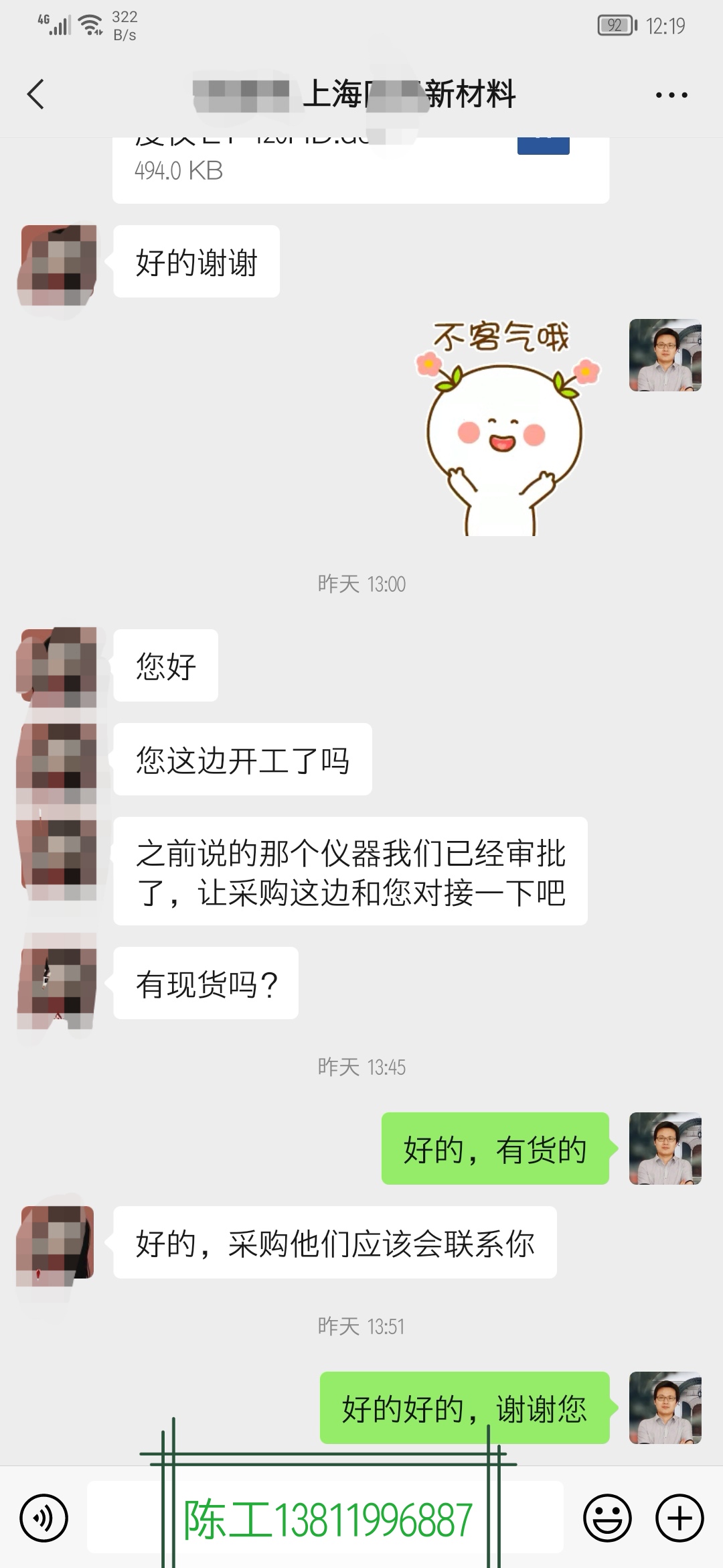 這位上海新材料行業的客戶,是在年前就寄了樣品過來我們幫測試過,測量數據傳給客戶沒問題后,才一步一步的溝通好達成合作意向。