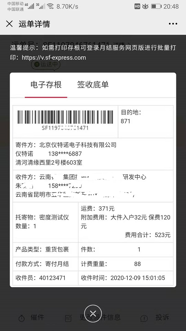大量程密度計一臺發貨運費五百多?這個還真是有圖有真相的。