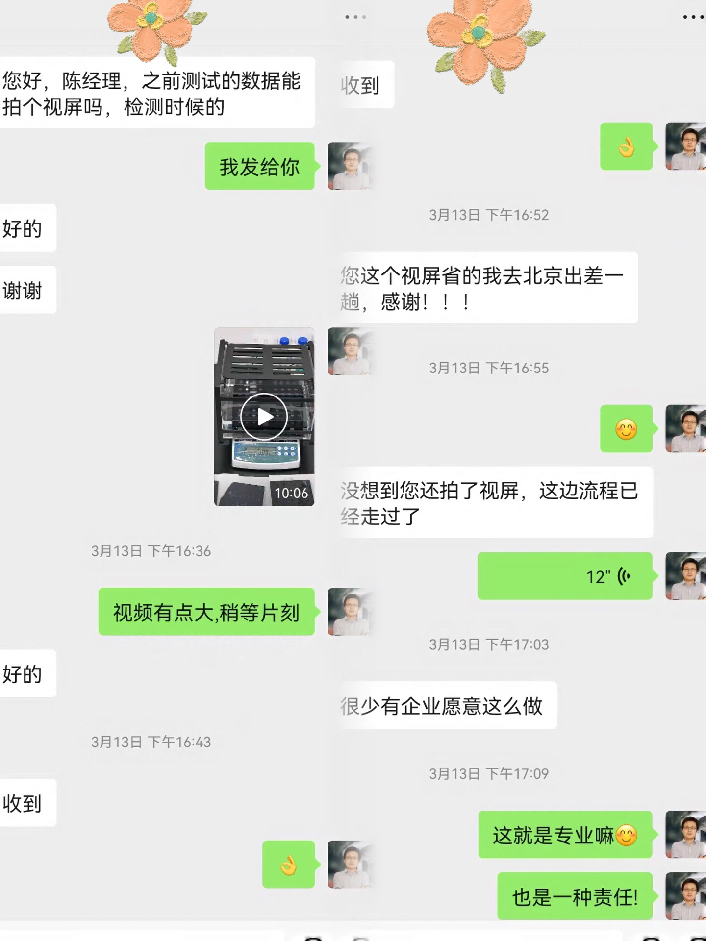 他沒想到我們會主動(dòng)拍樣品測試視頻,在用戶的想法里是很少有企業(yè)會這么做的,而我們收到客戶樣品拍測量視頻,只是一個(gè)常規(guī)操作,順手而為的事情。