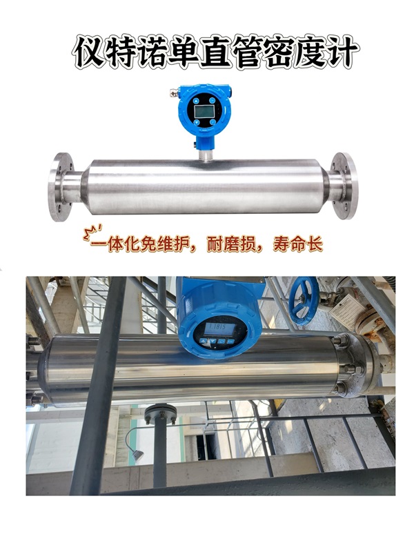 單直管密度計應用在這個現場需要在管道上進行旁路安裝,優點是經濟實惠,性價比高。測量精度高,穩定性好。
