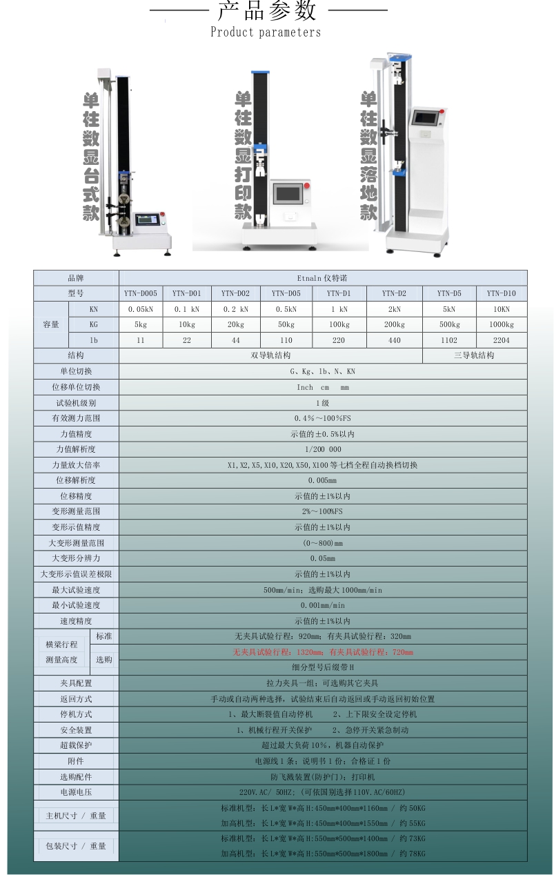 保鮮膜拉力試驗機_包裝薄膜拉力試驗機YTN-D05,容量KN:0.5kN;KG:50kg;lb:110.該機型主要用于負荷低于0.5kN的材料試驗,廣泛應(yīng)用于工廠、高校、科研單位、質(zhì)檢機構(gòu)等。(YTN-D系列單柱萬能拉力試驗機型號規(guī)格多,按需選型)。